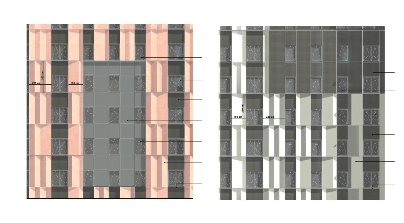 - La seconda è lo spazio workshop, a servizio degli studenti con possibilità di apertura occasionale a fruitori esterni. Questo spazio viene collocato su piazza dello Studentato in posizione simmetrica rispetto alla caffetteria, così da garantire un accesso dedicato che non interferisce con i flussi propri dello studentato. Lo spazio workshop potrà poi usufruire di un area esterna per lo studio all'aperto e lo svago direttamente connesso con la vivace piazza prospiciente.