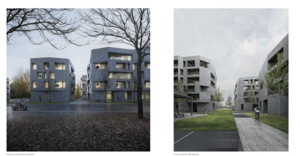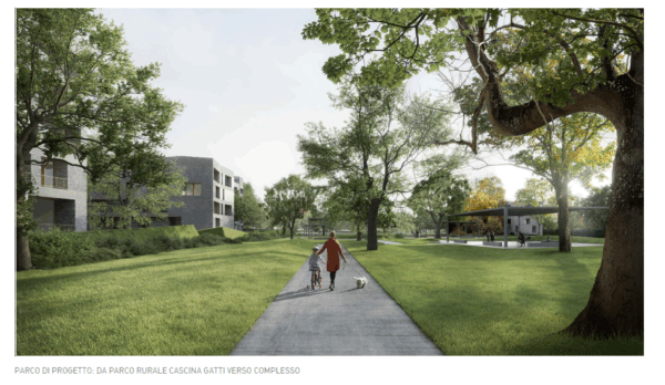 La vegetazione sarà scelta con attenzione: alberi in continuità con il parco rurale, piante erbacee e arbustive a bassa manutenzione e sistemi di irrigazione a risparmio idrico. Anche l’illuminazione sarà sostenibile e sicura: i sensori di movimento regoleranno l’intensità della luce in base alle necessità, garantendo comfort e sicurezza (tecnologia Light on Demand).