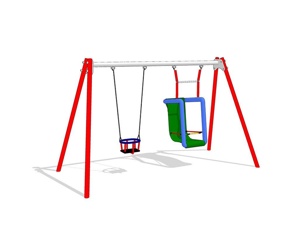 - un’altalena doppia con due sedili: uno a gabbia e uno a seggiolino con sostegno per la schiena