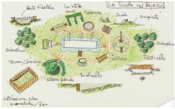 - Ogni aula si affaccia sul GIARDINO, un vero e proprio piccolo bosco. Qui si trova il “percorso di Pollicino”: un percorso naturale tra piante, fiori, orti, essenze arboree, casette degli insetti e degli uccellini, giochi e tanti piccoli spazi attrezzati. Un habitat studiato e realizzato per vivere e sperimentare il contatto diretto con il mondo naturale: avvicinare i piccoli animali, sentire i profumi dei fiori e dei frutti, esplorare i prodotti della terra e osservare le essenze erboree.
