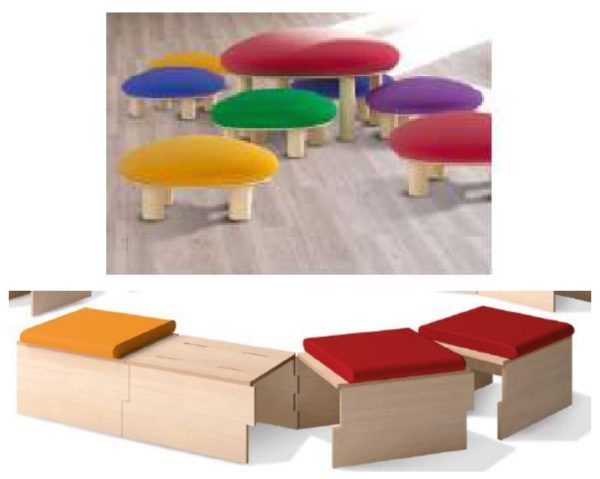 - L’INGRESSO è nella zona centrale dell’asilo e ha un’ ampia struttura coperta che accoglie tutti nelle giornate soleggiate, nuvolose o piovose. Una volta entrati, un luogo incantato accoglie i bambini e le bambine con vari pouf di dimensione e colori diversi e con un percorso nascosto costituito da pedane cave e sedute colorate.