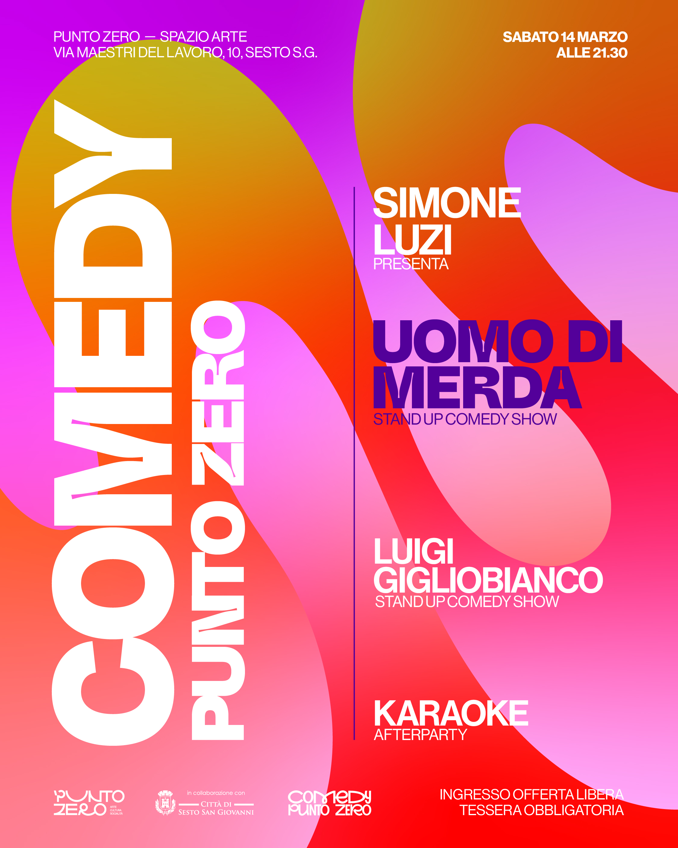 Una serata all'insegna dello Stand Up Comedy al Punto Zero con Simone Luzi e il suo spettacolo “Uomo di Merda”, preceduto dall’apertura di Luigi Gigliobianco.