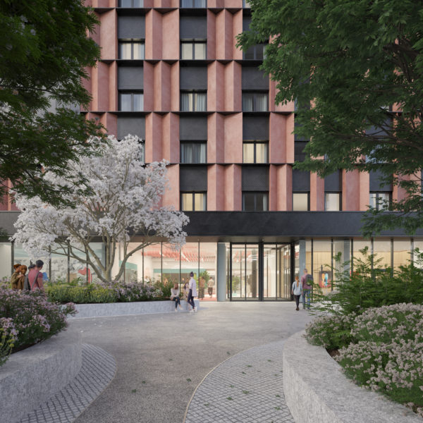 La piazza dello Studentato è il tassello conclusivo del nuovo sistema di piazze che diventerà luogo di ritrovo e socializzazione per gli utenti dello Studentato e per gli abitanti del quartiere, insieme ai nuovi negozi adiacenti.